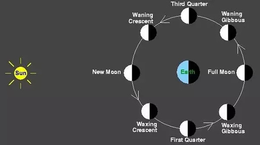 さらに新月生まれだと、太陽と月は同じ方角に見える。イコール同じ星座にあります。満月生まれだと、太陽と月は180度正反対の方角に見える。つまり対角の星座に位置することになります。