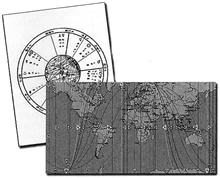 さらに、故ジム・ルイス氏によって考案された“アストロ・カルト・グラフィー”について。世界地図にグラフ状の線が描かれたものです。これはその人のホロスコープの各惑星が、アングルとまじわる交点をしるしたもので、MC(南中点)、IC(天底)と交わるラインは北極から南極へ向けて直線で、アセンダント及びデイセンダントと交わるラインは曲線で描かれています。